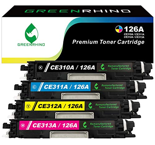 Up To 40% OFF GREENRHINO Remanufactured Toner Cartridge Replacement for HP 126A CE310A CE311A CE312A CE313A CP1025 CP1025nw CP1026nw CP1027nw CP1028nw ; MFP M175 M275 (1 Black, 1 Cyan, 1 Magenta, 1 Yellow, 4-Pack)